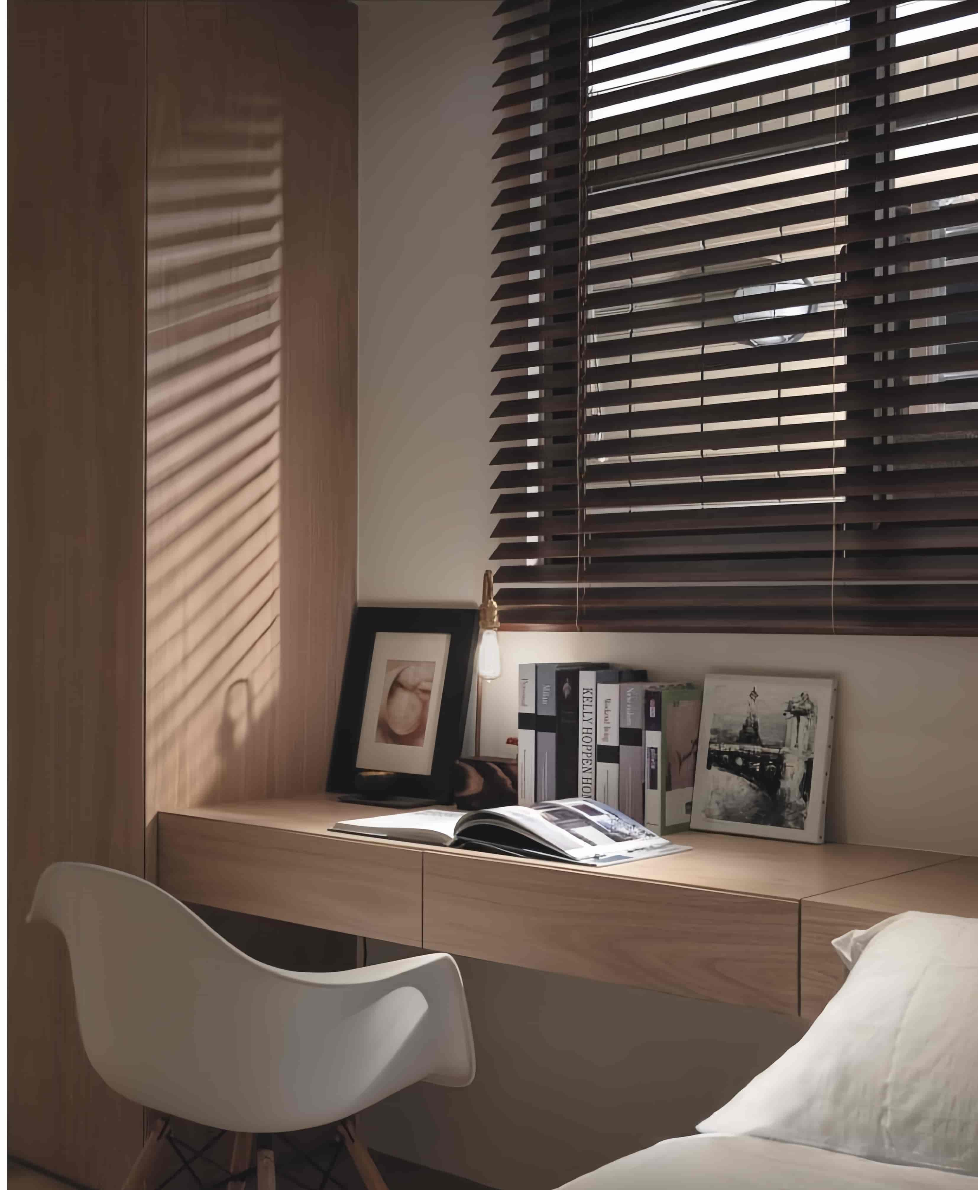 Precise light control at your fingertips. Simply tilt the slats to manage privacy and airflow simultaneously. Durable and moisture-resistant options make them ideal for kitchens, bathrooms, and home offices.