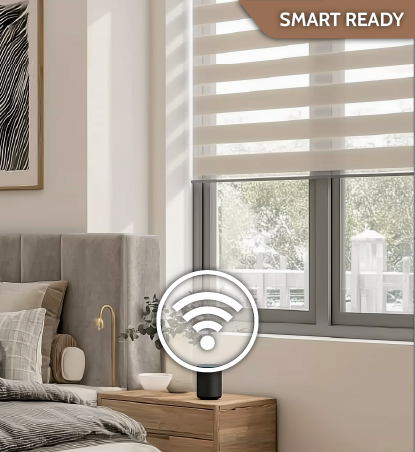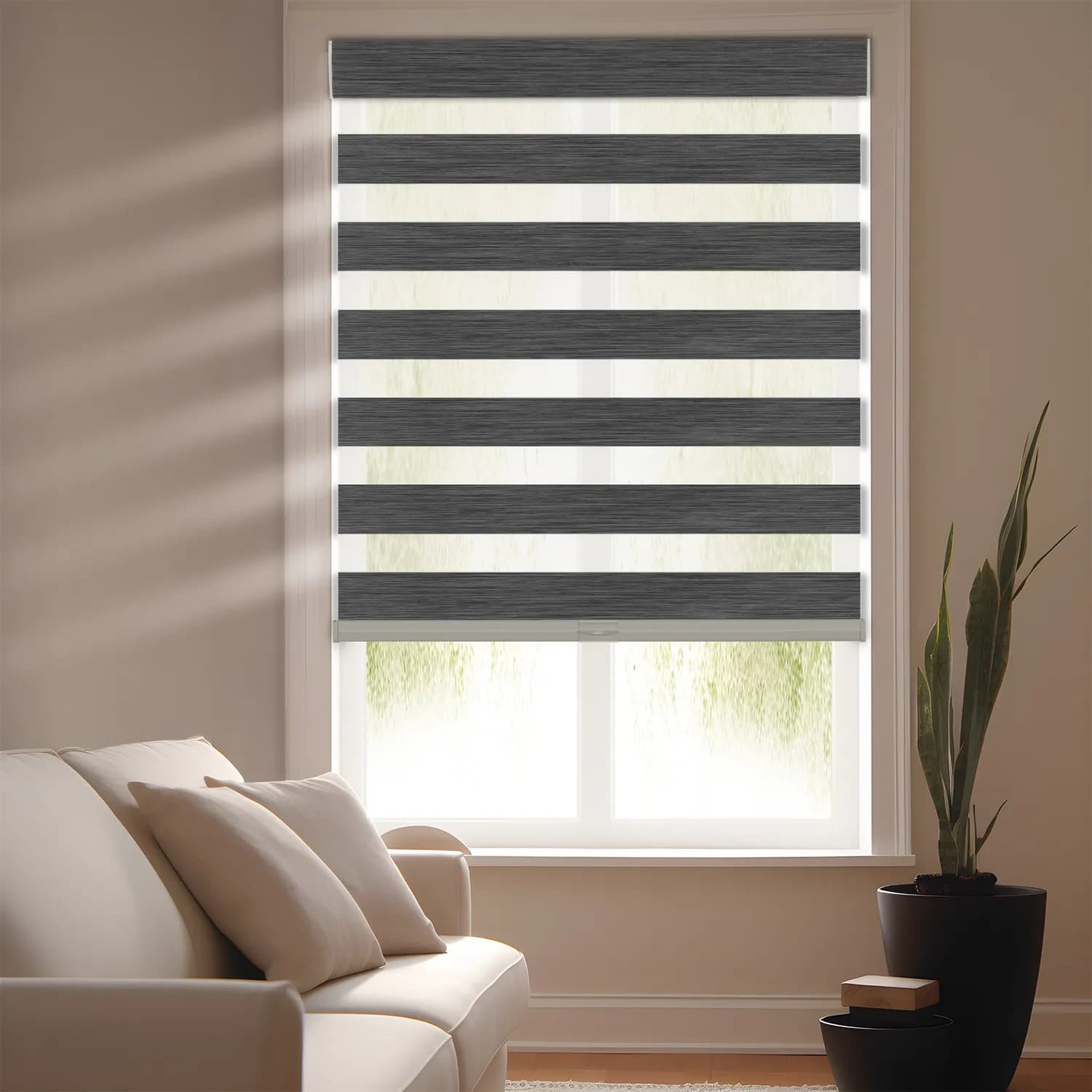 Control light with a modern twist. Alternating sheer and solid fabric bands allow you to switch between privacy and visibility instantly. A stylish, functional statement for contemporary living areas.