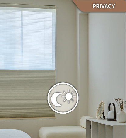 Privacy Without Losing the View. The best of both worlds. A dual system featuring a sheer blind for daytime light filtering and a blockout blind for night-time privacy.